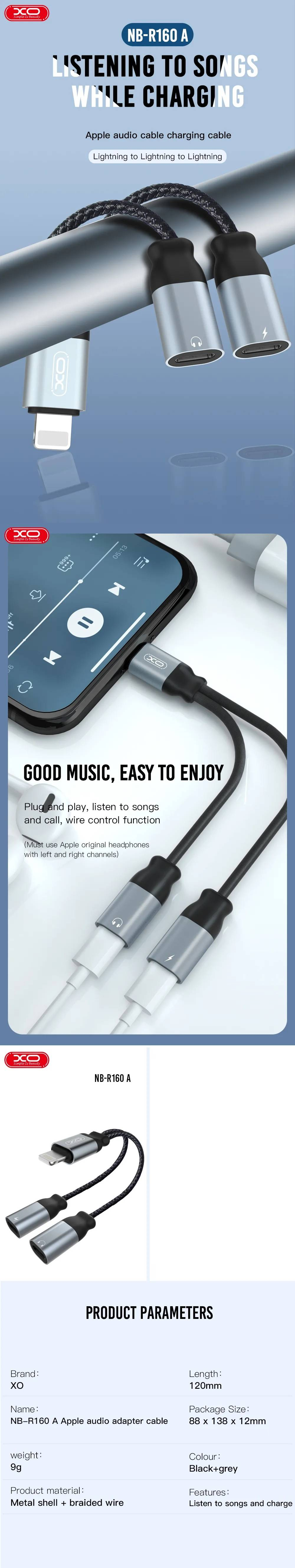 Adapter Lightning til Lightning - Lightnig i Sort (XO - NBR160A)