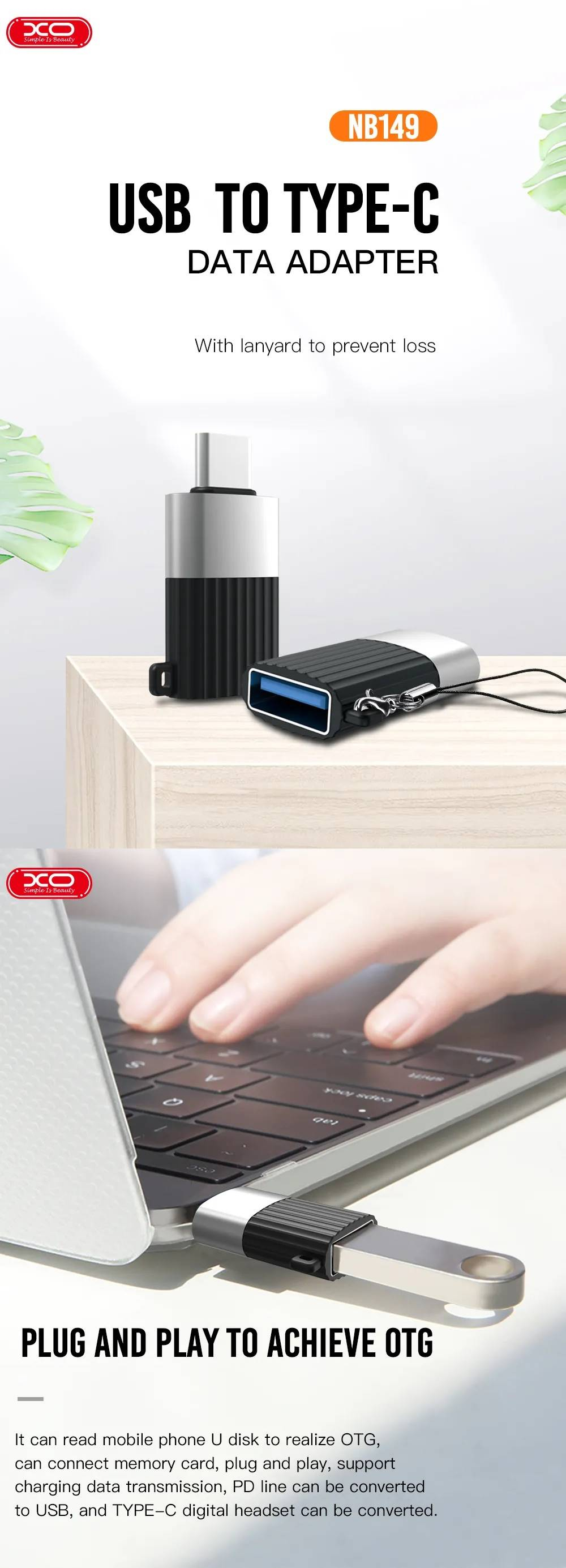 Adapter USB til USB-C i Sort (XO - NB149-F)