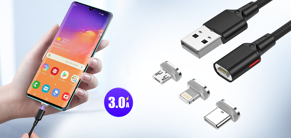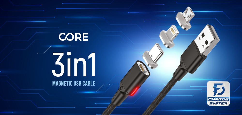 Magnetisk 3-i-1 Forever Core-kabel er designet til at sikre fuldstændig universalitet og alligevel gøre dit liv lettere. Tippakken vil gøre dig i stand til at tilslutte enheder ved hjælp af alle de mest populære teknologier verden over, inklusive USB-C, microUSB og Lightning. Du kan bruge kablet til at oplade enhver smartphone, tablet eller bærbare højttaler hurtigt og sende data til dem.Forever Core 3in1 Magnetic USB Kabel - 20 W - 1 Meter - Sort